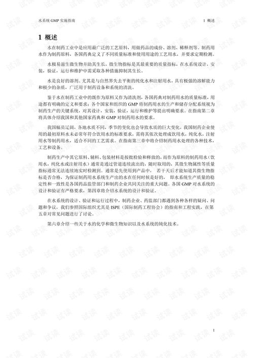 随着我国医药行业的快速发展,药品生产质量管理规范(GMP)的实施已成为确保药品质量的关键环节。2010版GMP实施指南对水系统的要求进行了详细规定,本文将重点介绍水系统在GMP实施中的重要性以及实施要点。